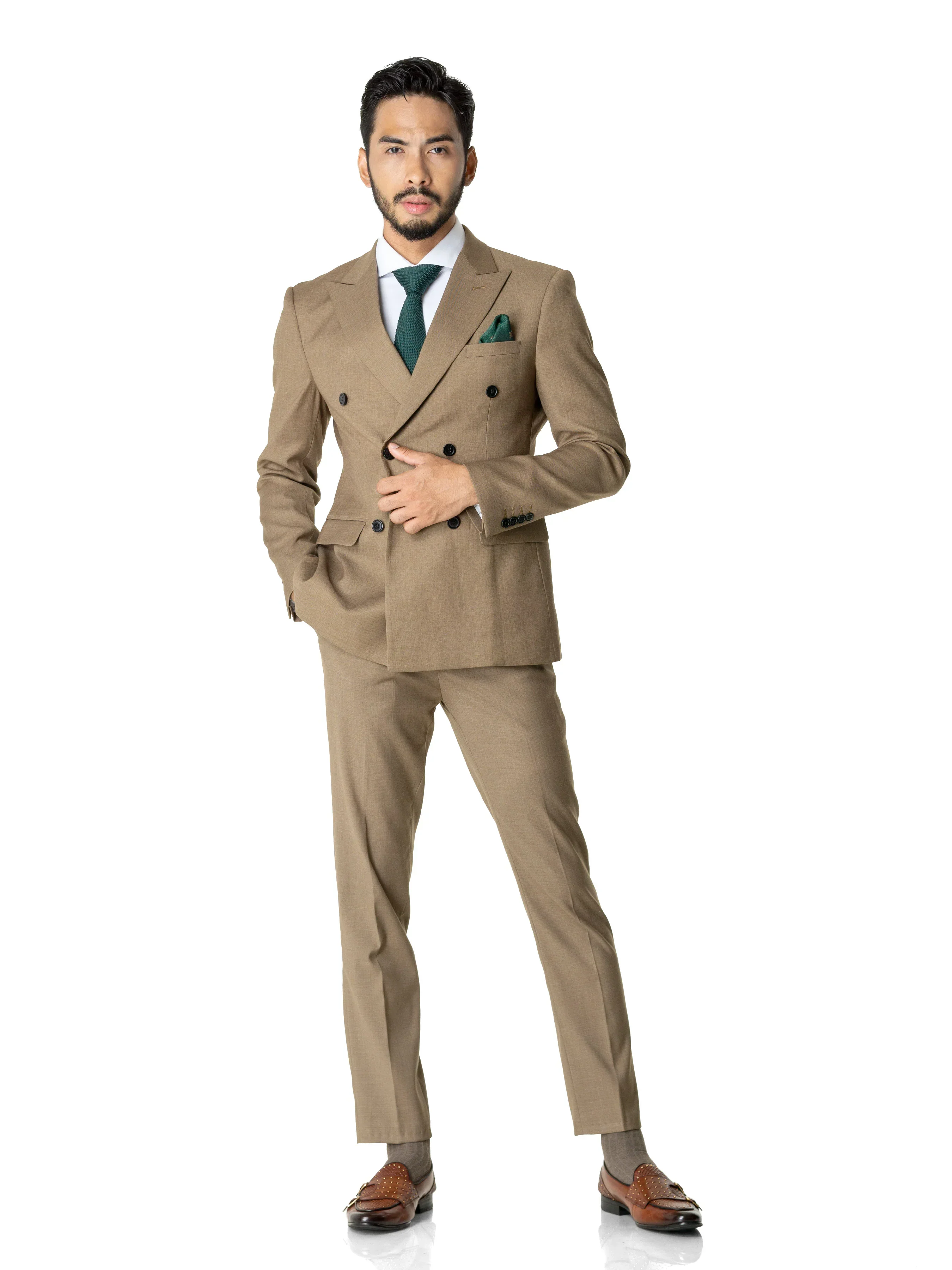 Double Breasted Suit Blazer - Khakis Plain (Peak Lapel)
