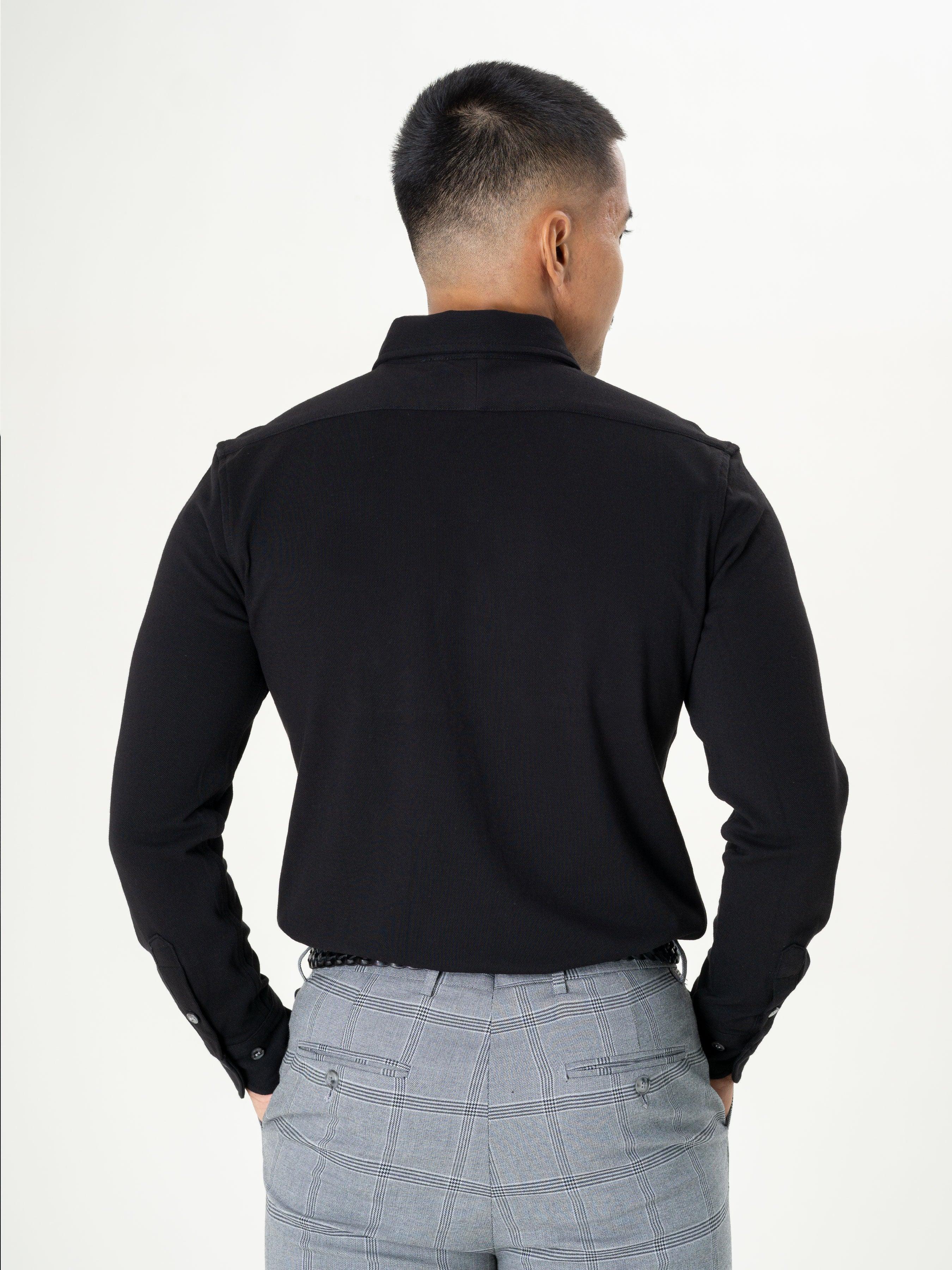 Long Sleeve Polo Shirt - Black Button Down