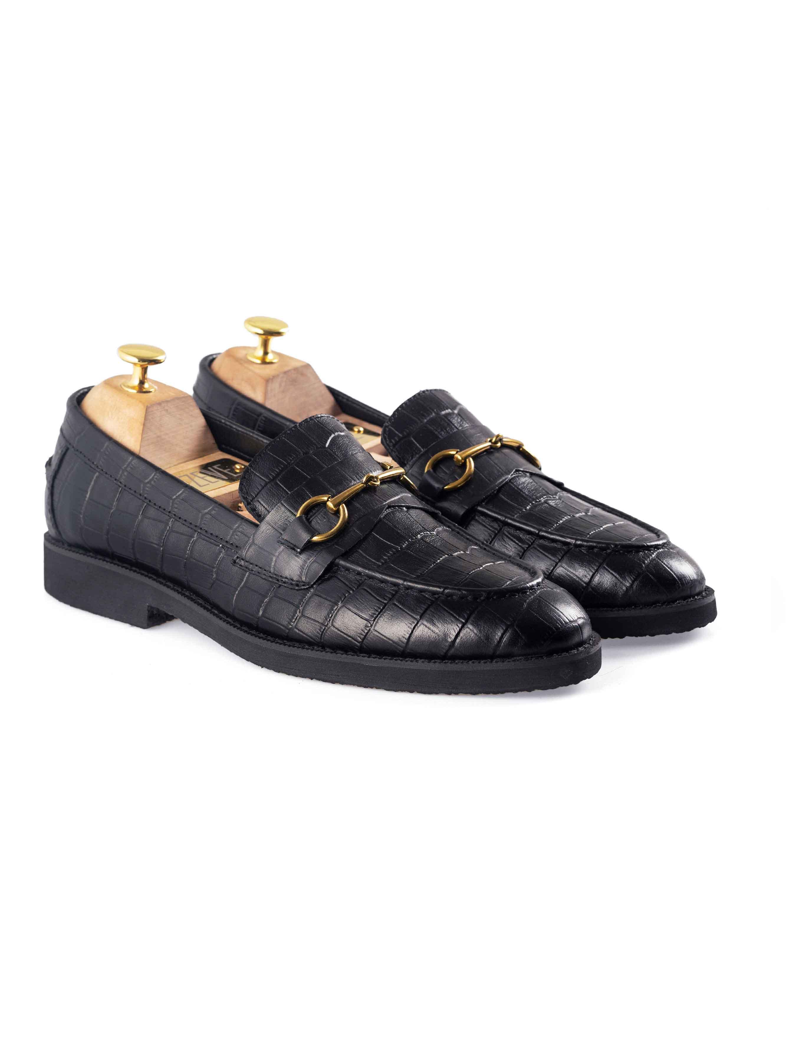 Penny Loafer Horsebit Buckle - Black Croco Leather (Crepe Sole)